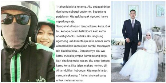 Seperti yang dialami driver ojek online ini. Tak ada rayuan gombal saat pertama kali membonceng penumpangnya. Namun, tujuan akhir dari titik mengantar rupanya terus berlanjut hingga satu tahun lamanya. Bahkan rencananya, mereka akan menikah bulan depan.